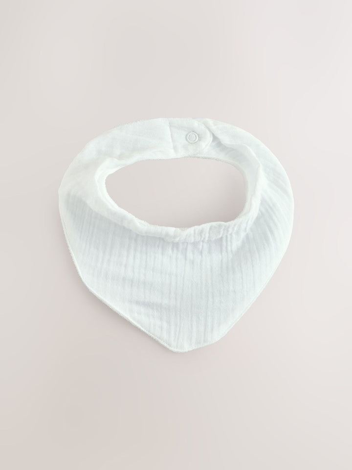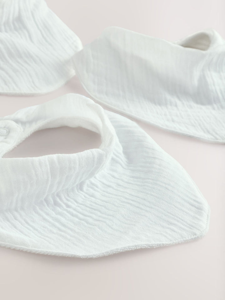 Pack of 3 bibs. Soft crinkle cotton fabric. Terry towelling fabric to the back. Nickel free popper fastening. Machine washable. 3 x Bib Main 100% Cotton. Lining 80% Cotton, 20% Polyester with PU coating. Country of Origin: India Warning: Keep away from fire and flames.