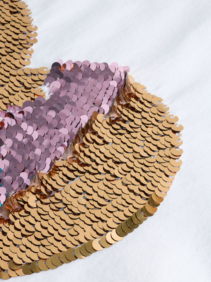 White Pastel Rainbow Sequin Heart Print T-Shirt (3-16yrs)