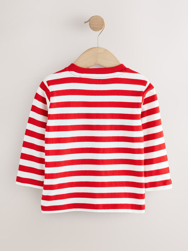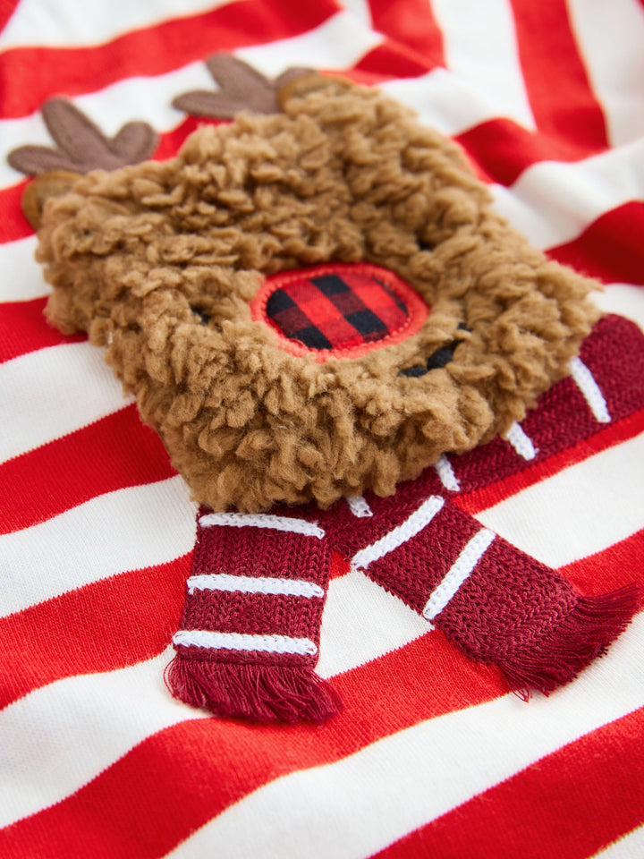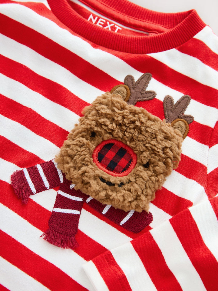 White/Red Reindeer Pocket Christmas Long Sleeve T-Shirt (3mths-7yrs)