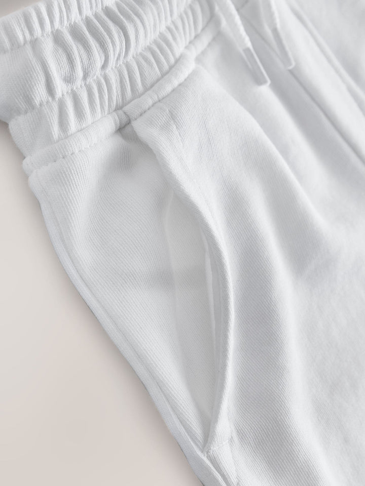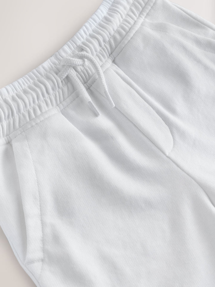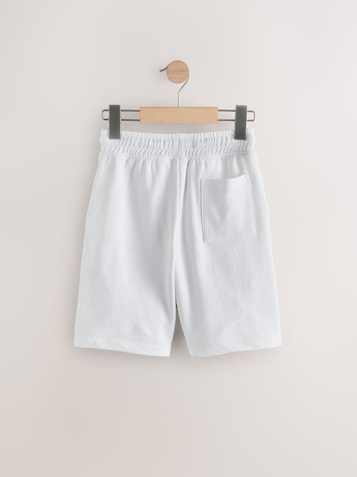 Our white jersey shorts are a delightful addition to their summer collection. Whether they're on a summer adventure or spending the day at home, these shorts are fit for both.With a soft cotton-rich fabric, these shorts are light and breathable for the warmer months. The handy drawcord and elasticated waist ensure a secure fit. Regular fit, hits the knee Cotton jersey Comfortable fit Ideal for summer Machine washable. 80% Cotton, 20% Recycled polyester. Country of Origin: Bangladesh