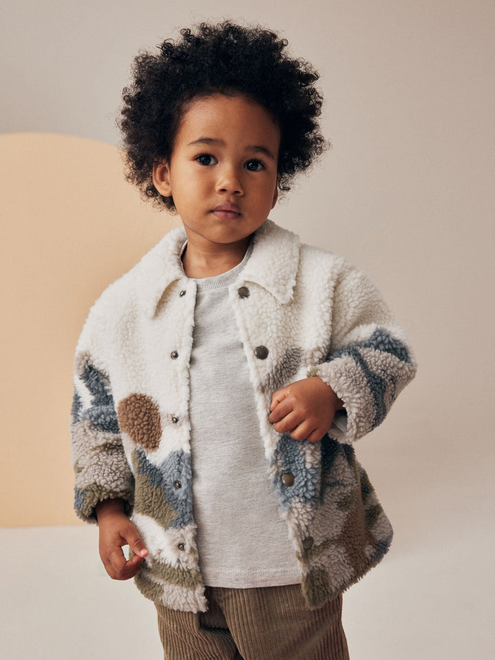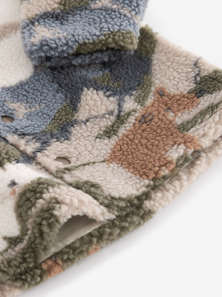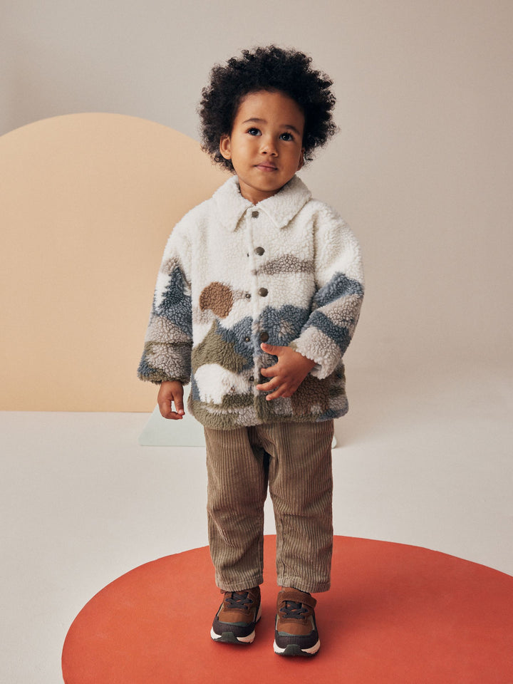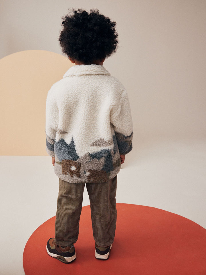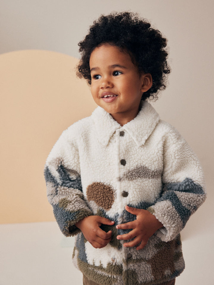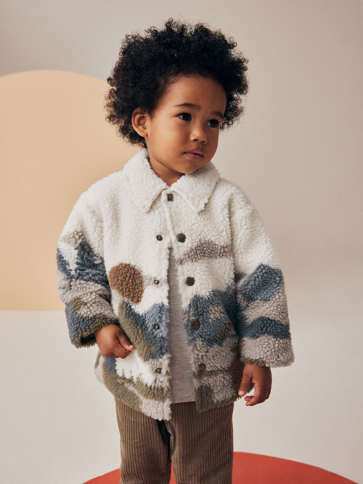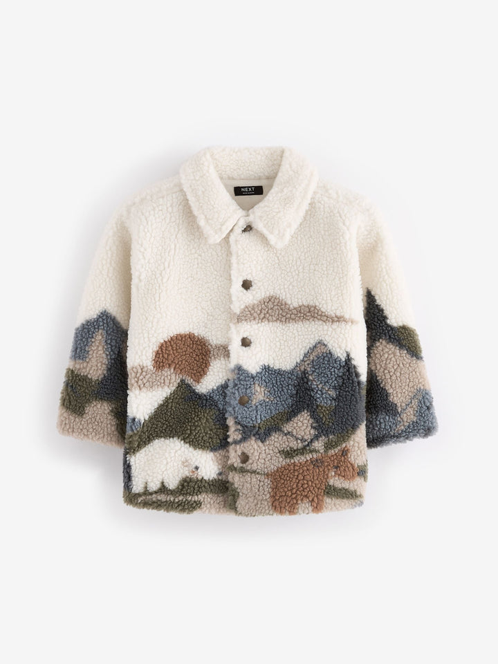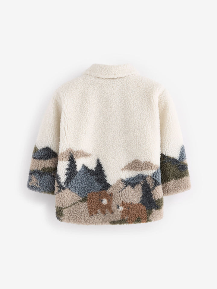 White Scenic Print Borg Fleece Shacket (3mths-7yrs)