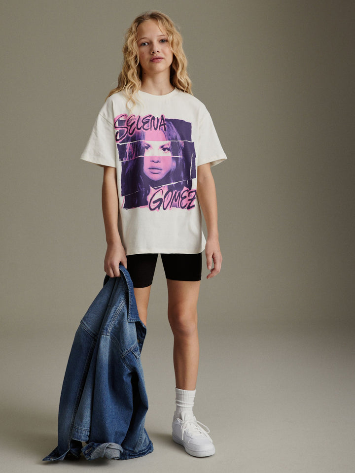 This oversized pure-cotton t-shirt is perfect for any Selena Gomez fan, featuring officially licensed graphics to the chest, a crewneck collar and short sleeves. Oversized fit 100% cotton Officially licensed Selena Gomez graphics Ribbed crewneck collar Short sleeves Machine washable. 100% Cotton. Country of Origin: Turkey