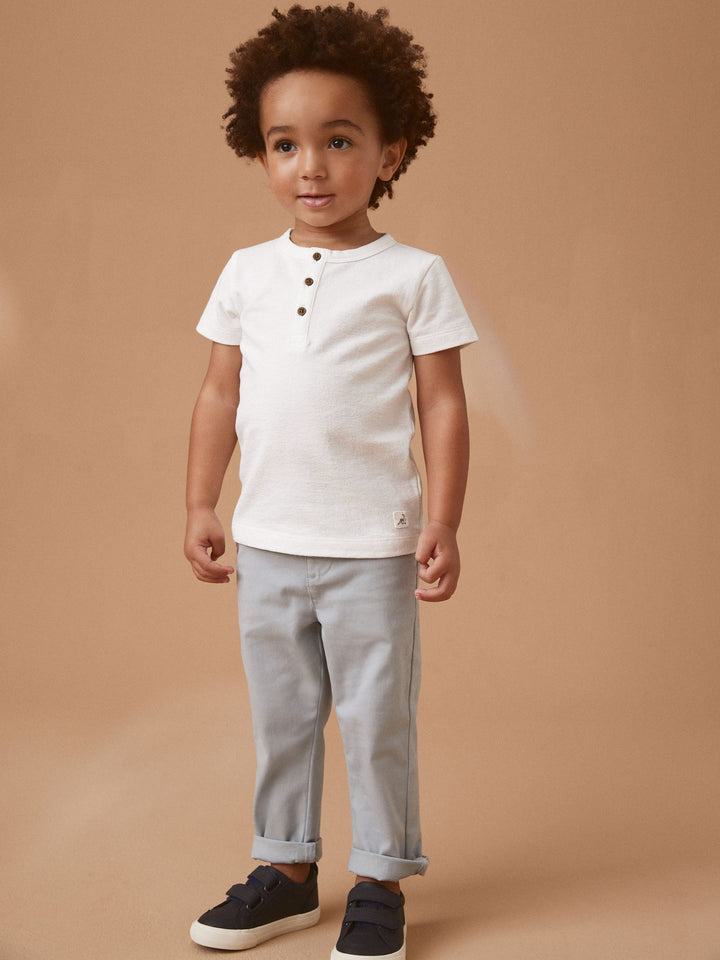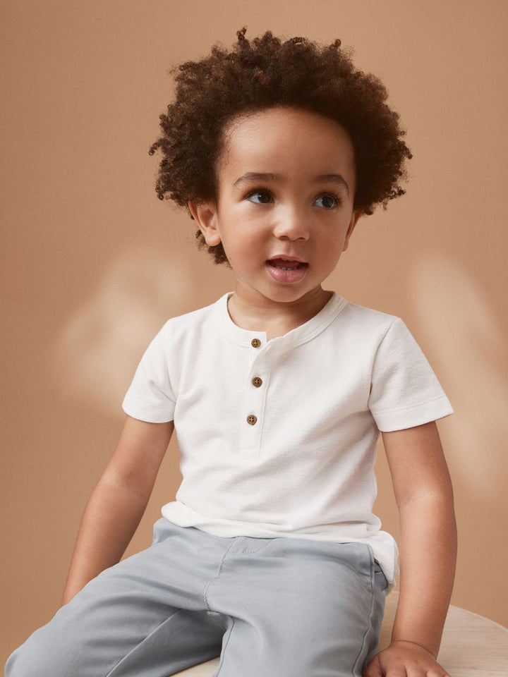 White Short Sleeve Henley Neck T-Shirt (3mths-7yrs)