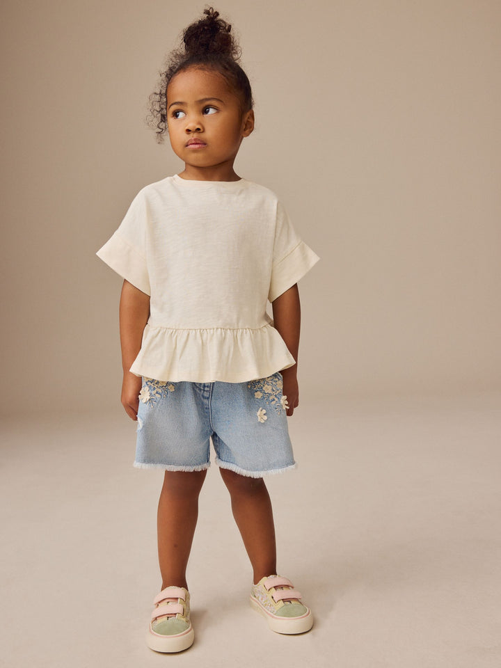 White Short Sleeve Peplum T-Shirt (3mths-7yrs)