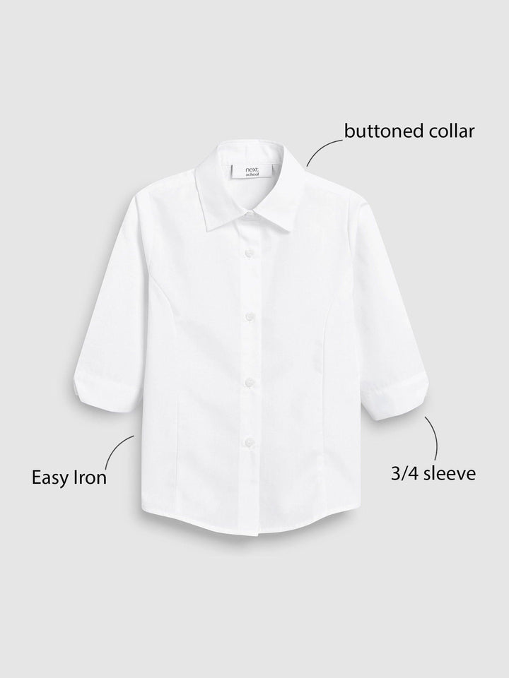Refresh her school wardrobe with this smart and stylish slim fit two pack of blouses. Crafted in a soft and comfortable polyester cotton blend with button fastenings and a classic collar. Boasting three-quarter length sleeves with a notch detail to the cuffs, they are the ideal style for year-round wear.Key Features: Easy Iron Fabric - Handy easy-iron finish Pro White - Pro white finish which keeps whites whiter for longer Slim fit Machine washable 3/4 length sleeve 2 pack Machine washable. 65% Polyester, 35% Cotton.