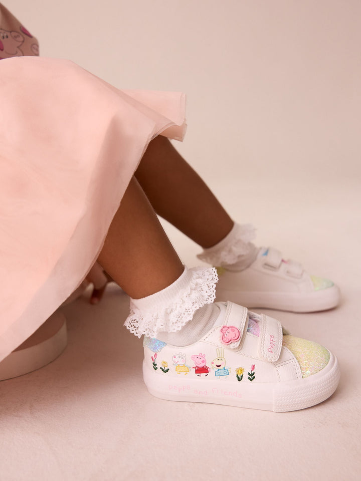 White Standard Fit (F) Peppa Pig Chunky Trainers with Touch Fastening
