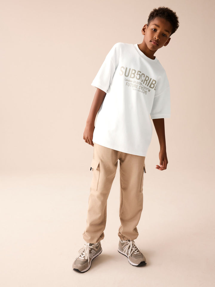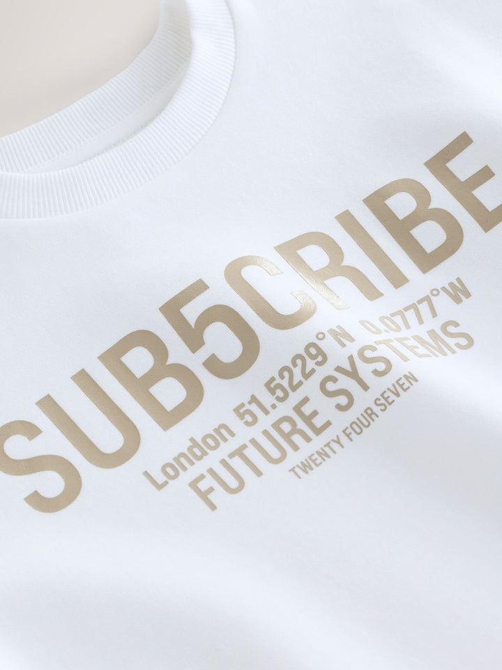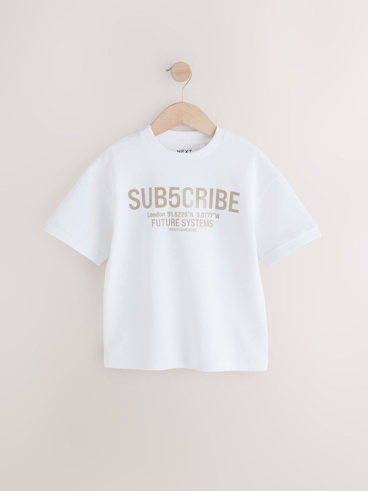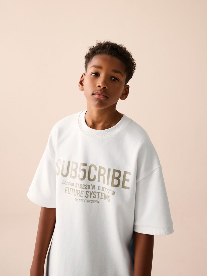 White Sub5cribe Graphic Print Heavyweight Short Sleeve T-Shirt (3-16yrs)