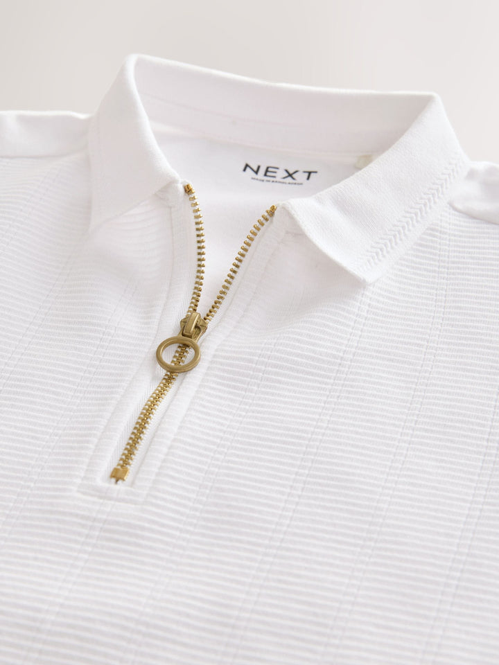 White Textured Short Sleeve Quarter Zip Polo Shirt (3-16yrs)