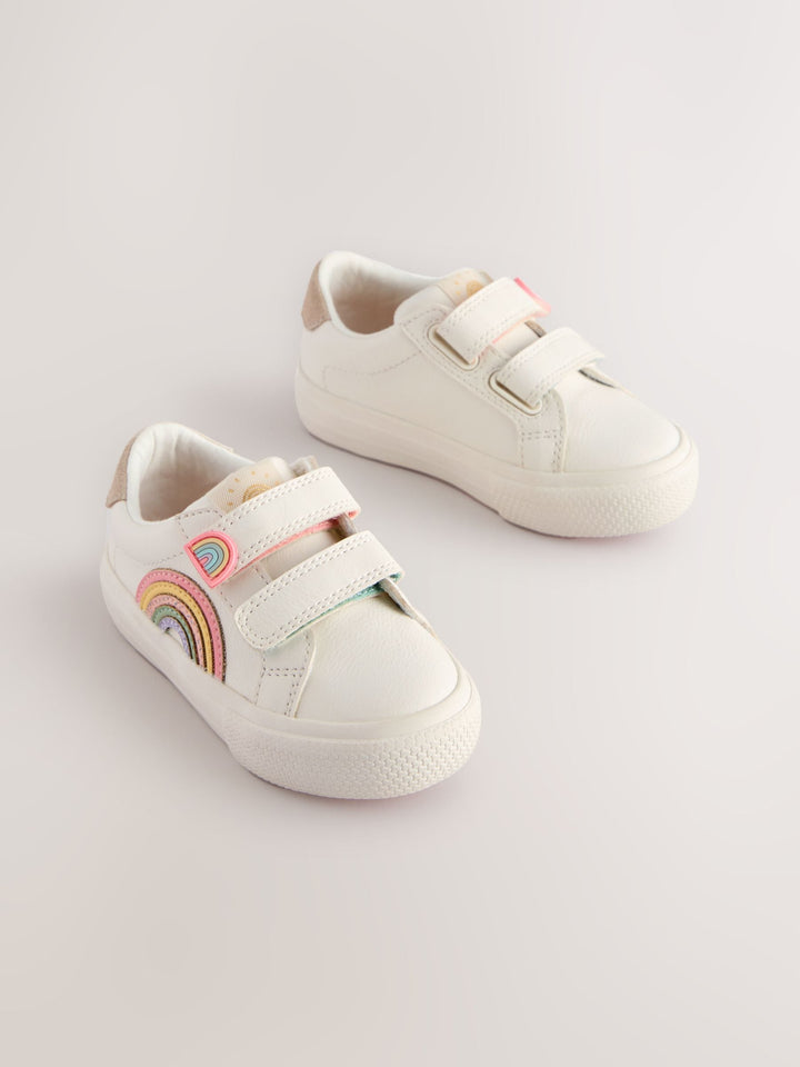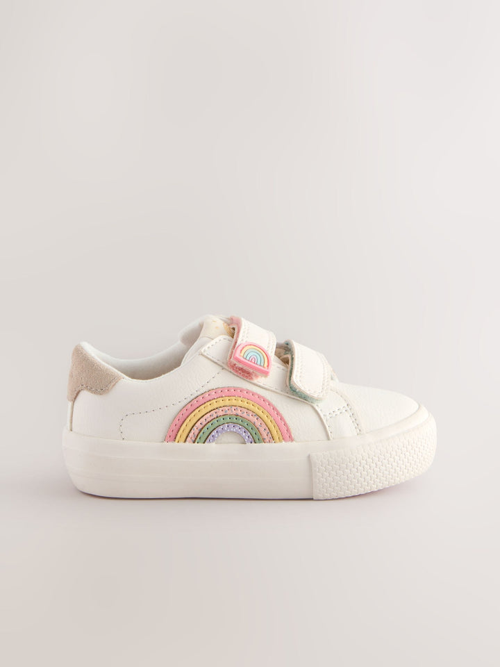 With a classic design and dual touch-fastened straps for easy wear, these white trainers are perfect as an everyday option, featuring a faux leather upper with rainbow detailing, a round toe and a textile lining, finished with a slip resistant sole. Wide fit (G) Faux leather upper Round toe Touch fastening Textile lining Slip resistant sole Upper - Other Materials, Leather, Lining & Sock - Textile, Sole - Other Materials. Country of Origin: Vietnam