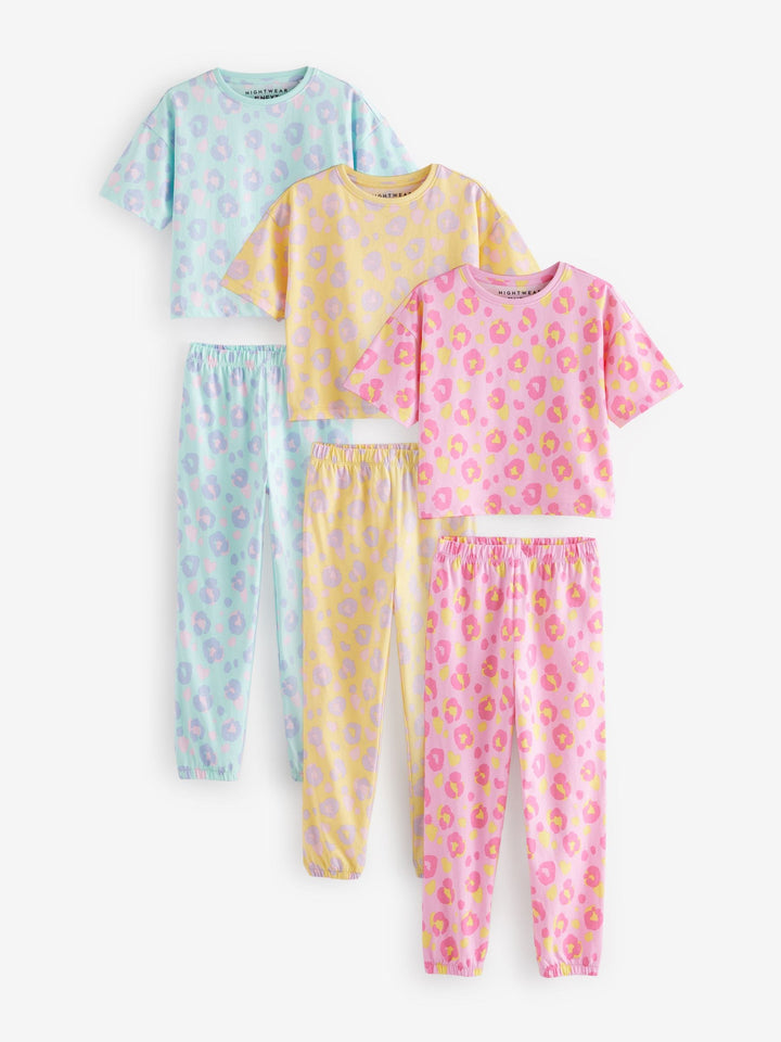 Stock up on their sleepwear essentials, with this 3-pack of pyjamas feature bright and colourful animal-print designs, across short sleeve t-shirts with a crewneck collar and full-length bottoms with an elasticated waistband, finished in 100% cotton. 3-pack 100% cotton Regular fit Animal prints Machine washable. 3 x Pyjama Top and 3 x Pyjama Bottom 100% Cotton. Country of Origin: Bangladesh Warning: Keep away from fire and flames.