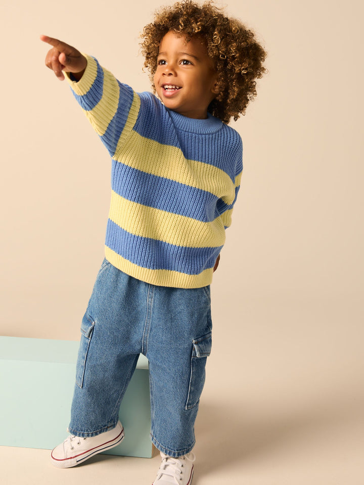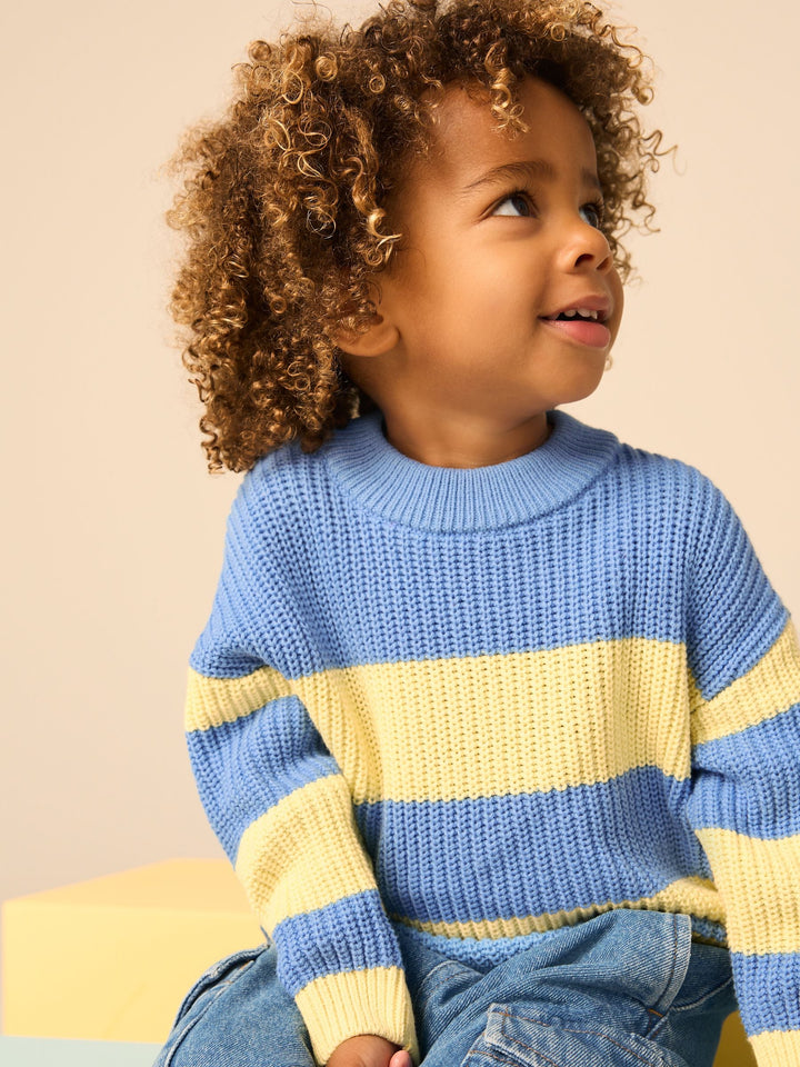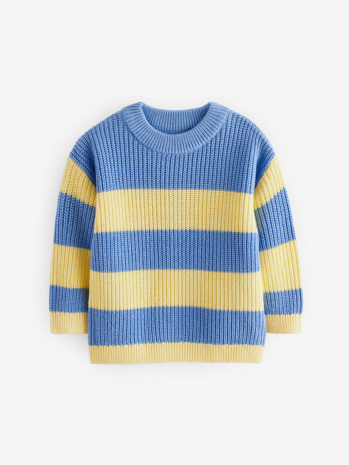 Yellow/Blue Stripe Knitted Crew Neck Jumper (3mths-7yrs)