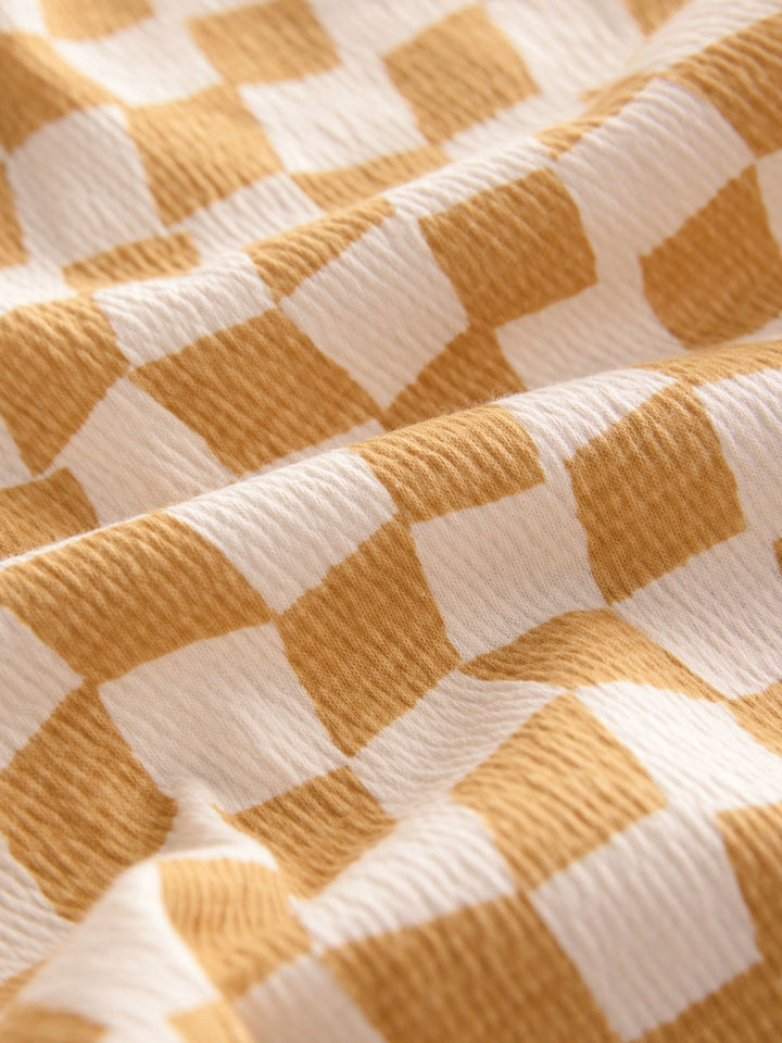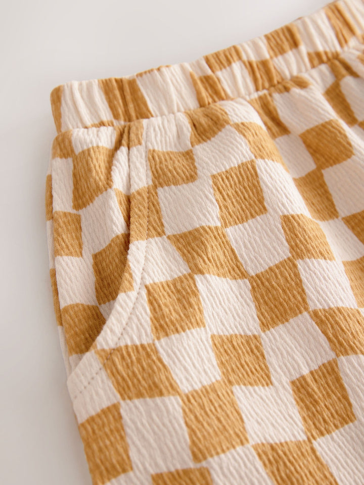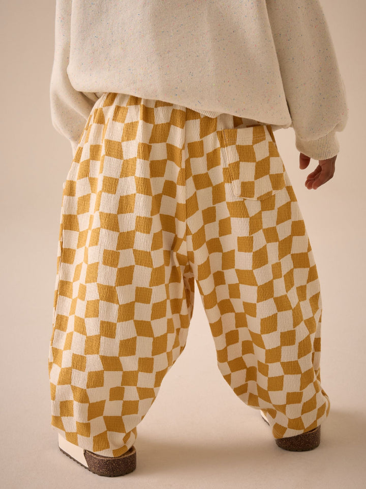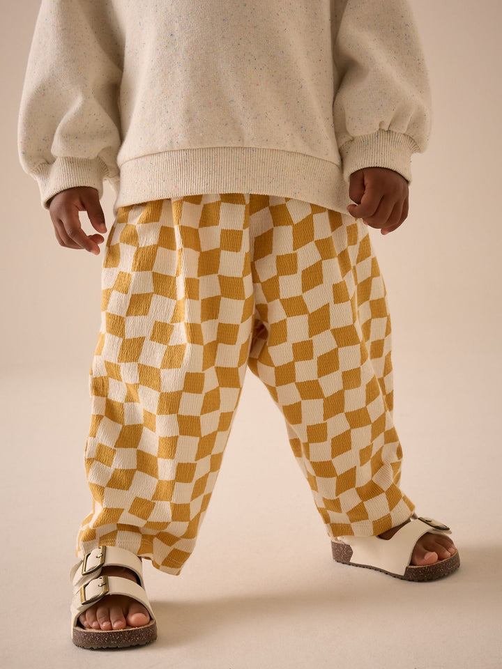 Yellow Checkerboard Textured Barrel Leg Trousers (3mths-7yrs)