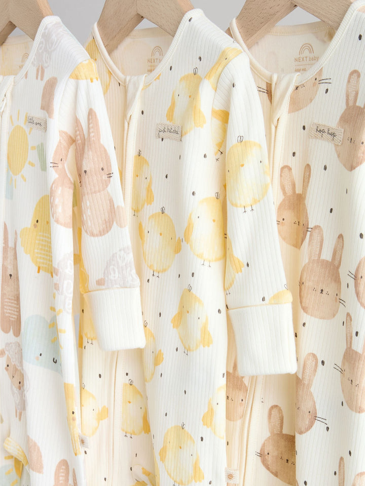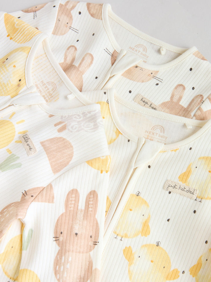 Yellow Easter Character Two Way Zip Baby Sleepsuits 3 Pack (0mths-3yrs)