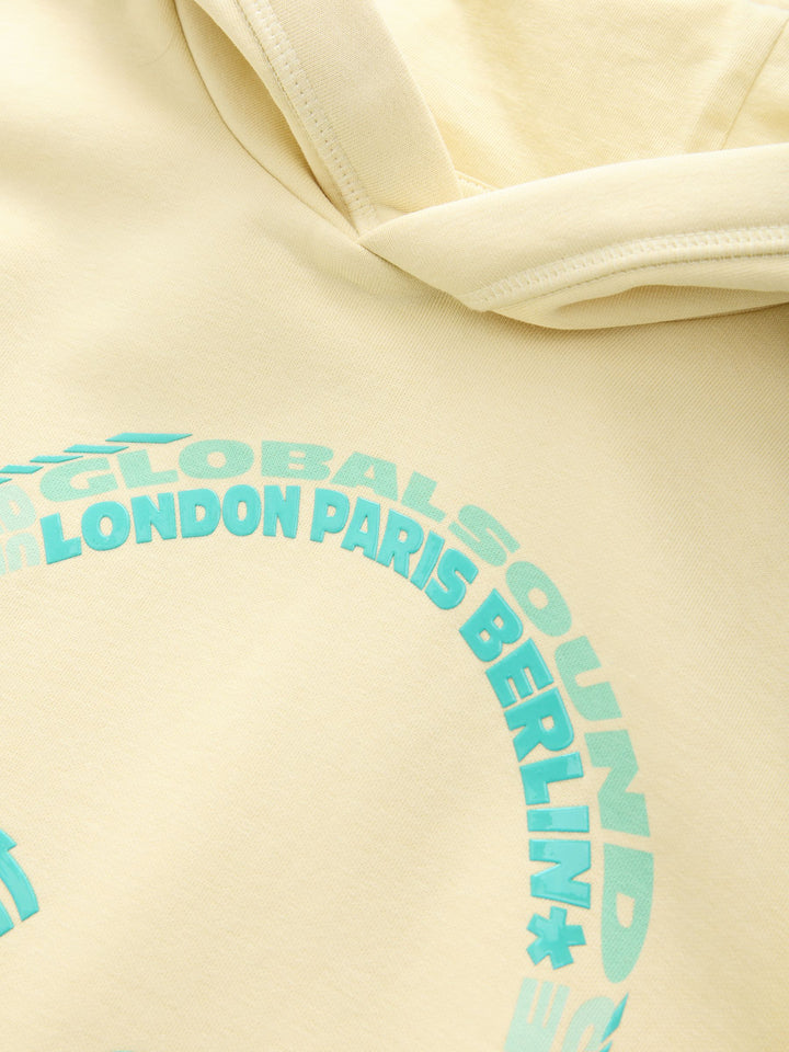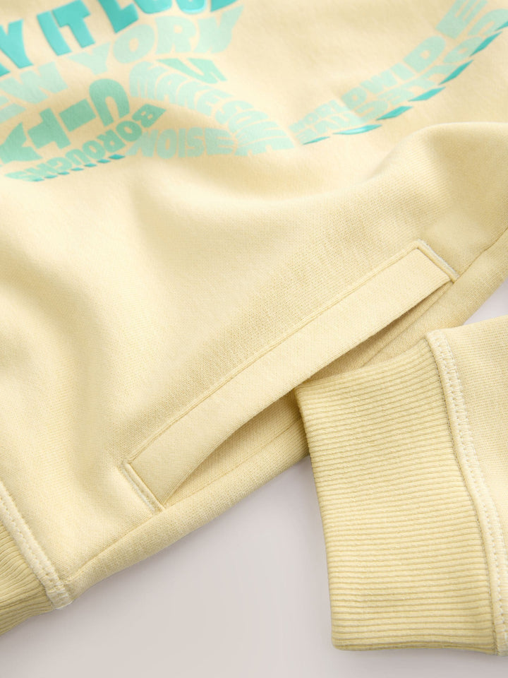 Keep them feeling cosy and looking stylish with this yellow hoodie. Detailed with a fun headphone print, this design is complete with side seam pockets and ribbed trims. Gel print design Side seam pockets Ribbed trims Machine washable. 80% Cotton, 20% Recycled polyester. Country of Origin: Bangladesh