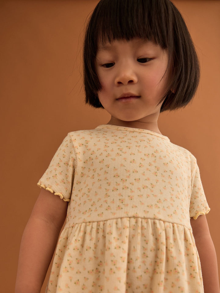 A twirlworthy addition to her summer selection, this yellow short sleeve dress is made from a cotton rich blend and features a pretty floral print with a ribbed texture. Pair with her favourite summer sandals for a cute look. Cotton rich Floral print Short sleeves Ribbed texture Machine washable. 95% Cotton, 5% Elastane. Country of Origin: Bangladesh
