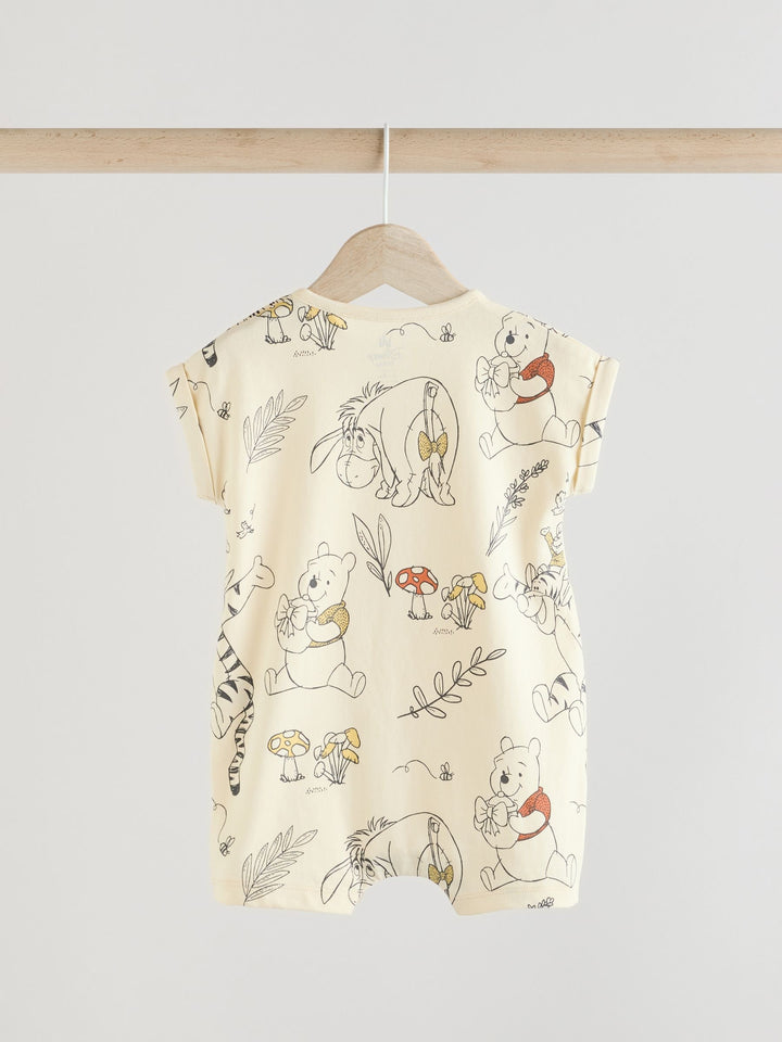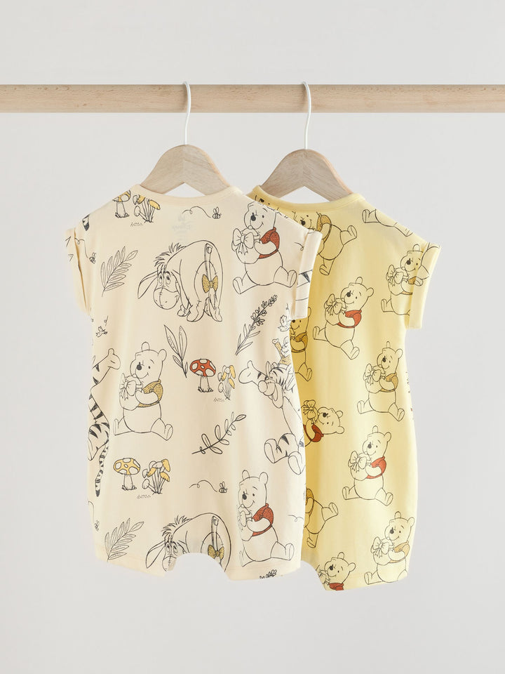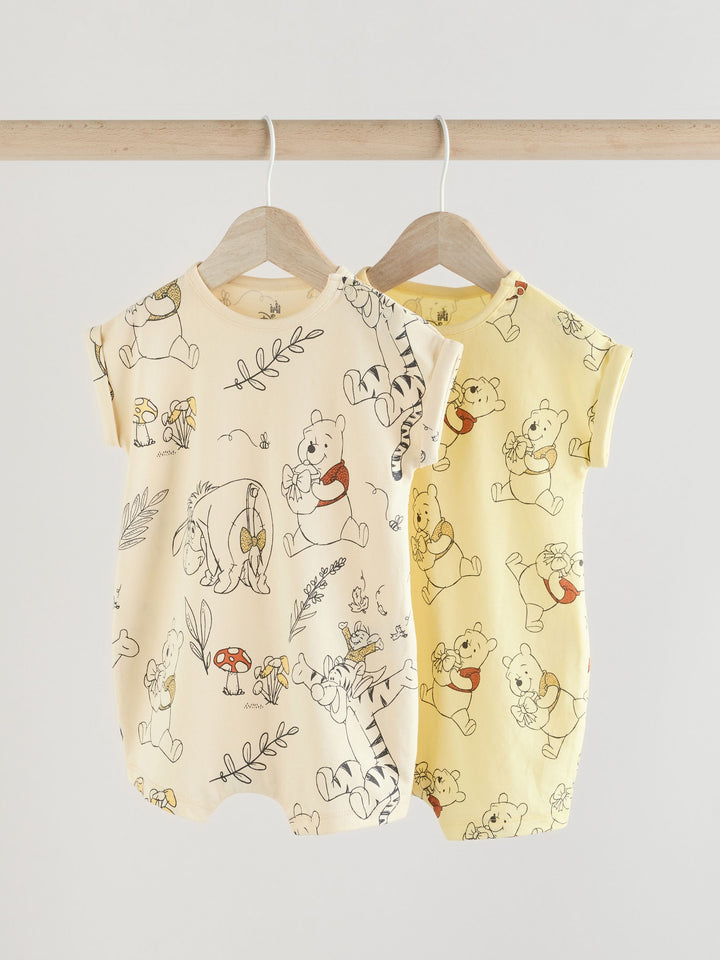 Yellow/White 2 Pack Printed Winnie The Pooh Baby Rompers